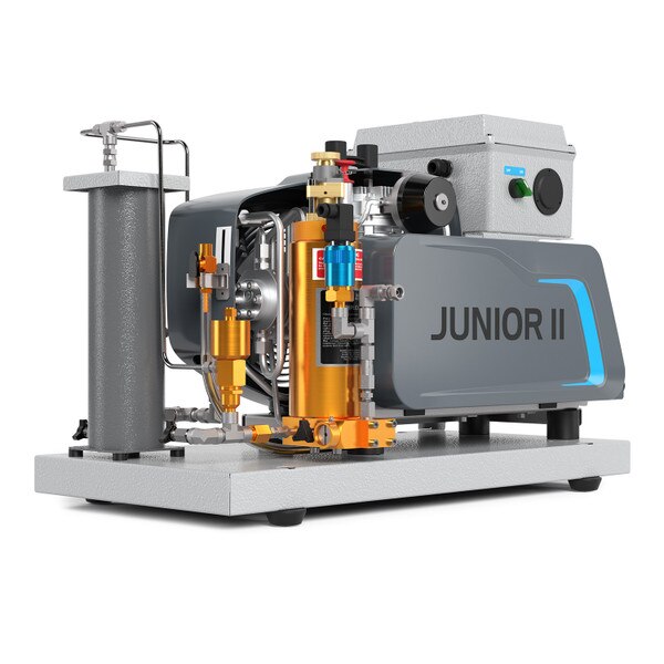 JUNIOR II and OCEANUS — include an air purification system and fill hose. These safe and reliable 3-stage compressors are designed for serious sport divers. Available in 1-phase 115/230 VAC and 3-phase 230/460 VAC electric motor, gasoline or diesel engine drives.STANDARD SCOPE OF SUPPLY